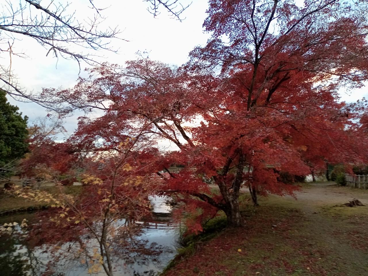 結構散ってしまっている木も多いですが、残っている赤色、そして右側の黄色の紅葉は艶やかで綺麗ですね!