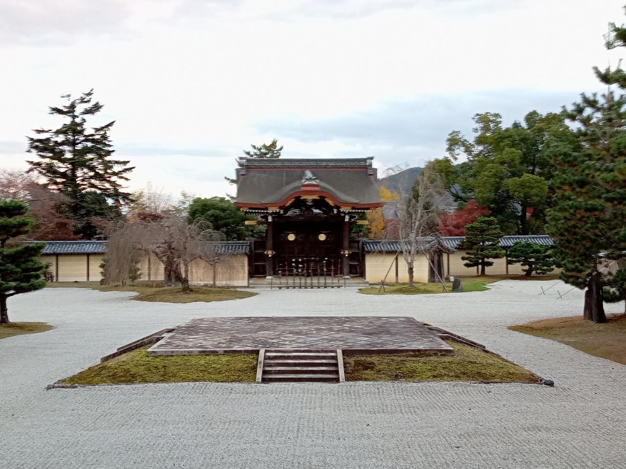 正面に見えるのは勅使門です。斜めに見える勅使門、中々良い景観です。