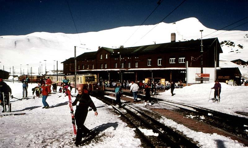 標高三千メートルを超える有名な観光地、ユングフラウヨッホに登山電車で行くにはふたつのルートがあり、多くの観光客は上述のグリンデルヴァルト経由を選びます。