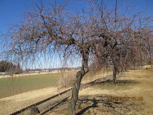 花畑脇の枝垂れ梅。まだ開花していません。