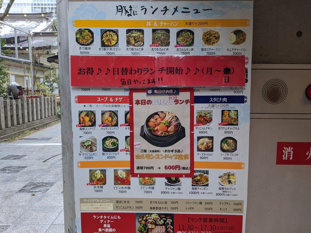 曽根崎お初天神通りにある韓国料理店「豚まに」にランチを食べに行った。