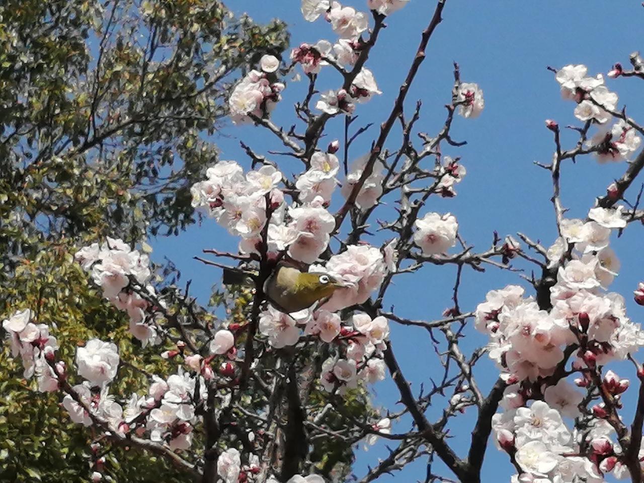 メジロを見ていたらかき氷の順番が近づいていたので急いでお店に戻りました -