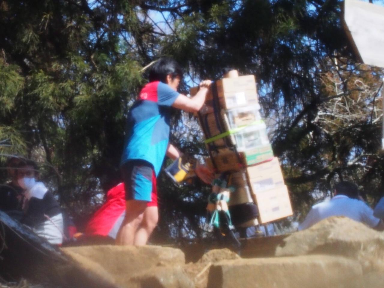 下社からの合流地点で、歩荷(ぼっか)のお兄さんが休憩していた。