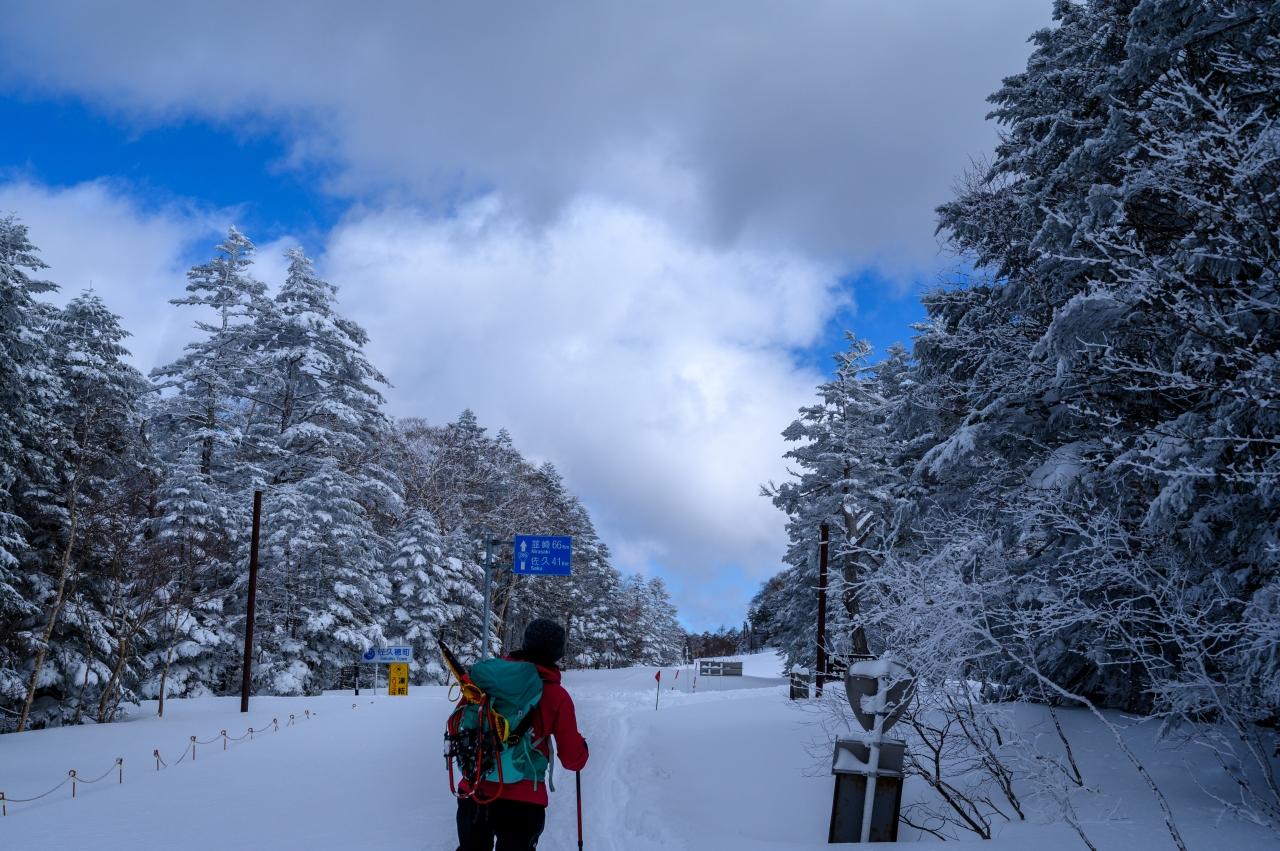 新雪に真新しいトレースのみ、縞枯山方面を予定していたが、そこから先のトレースの状態によってはラッセルもありそうなので、無難に五辻方面に変更する。
