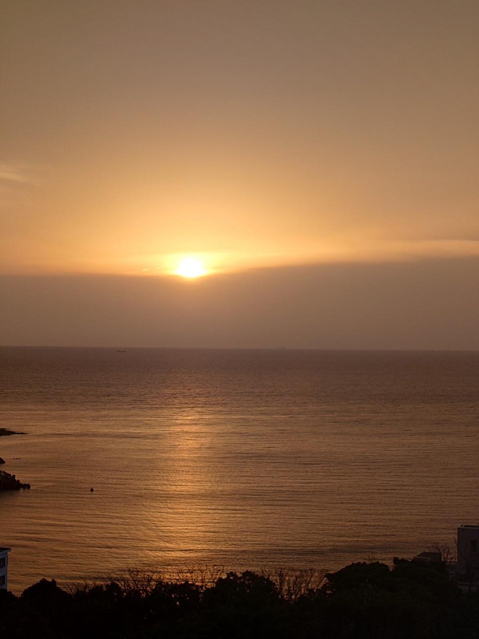 この夕日はお部屋から。1回お風呂に入ってから夕食をたべに行きます。