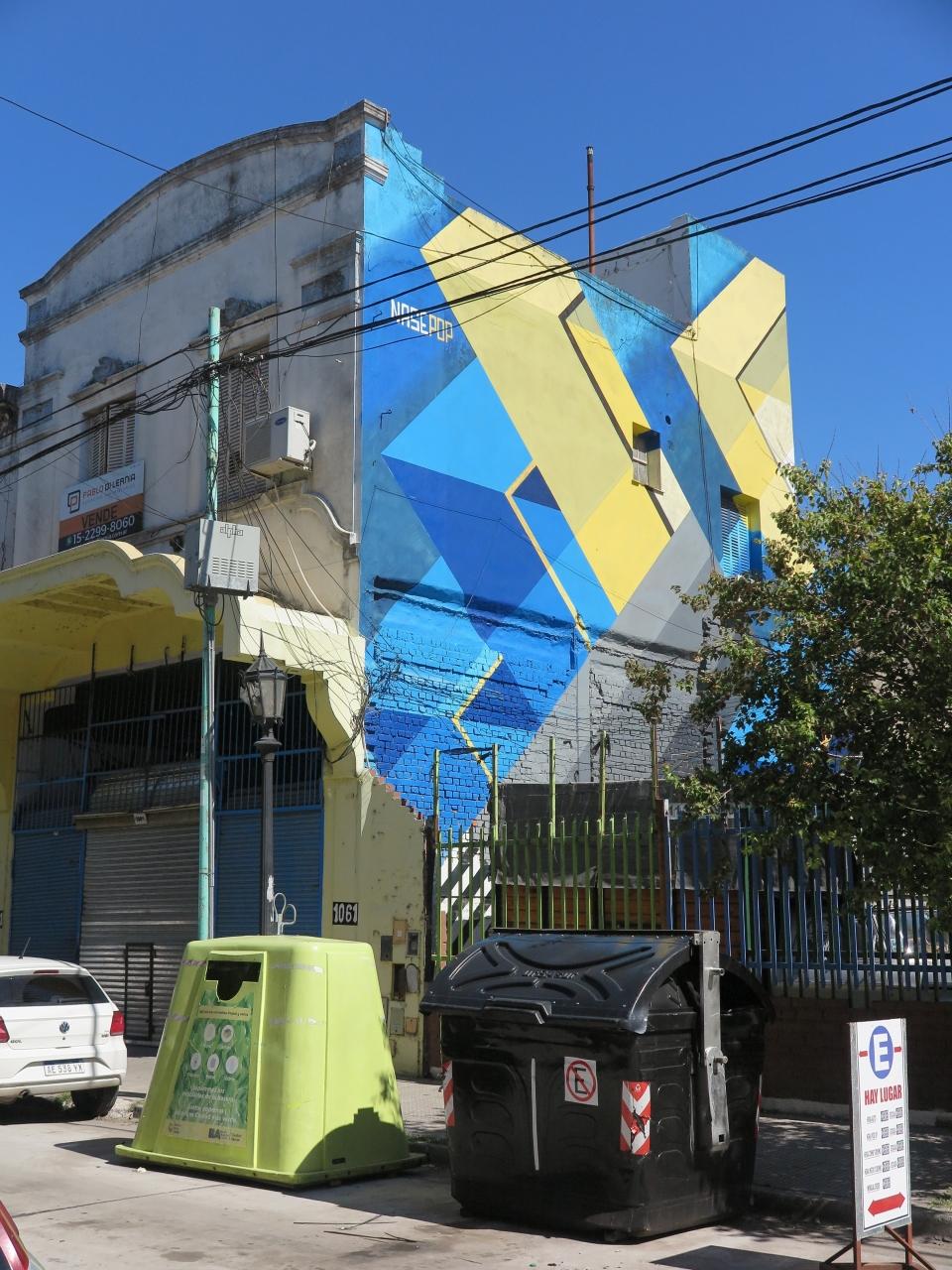 ボカといえばフットボール。アルゼンチンらしいウォールアートのアパート。さすがです。