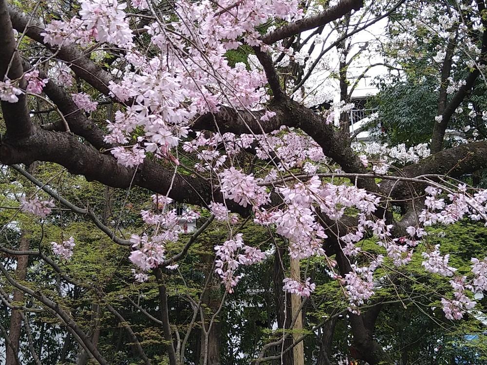 写真では分かりづらいのですが、枝垂桜の後ろのソメイヨシノも満開でした。 -
