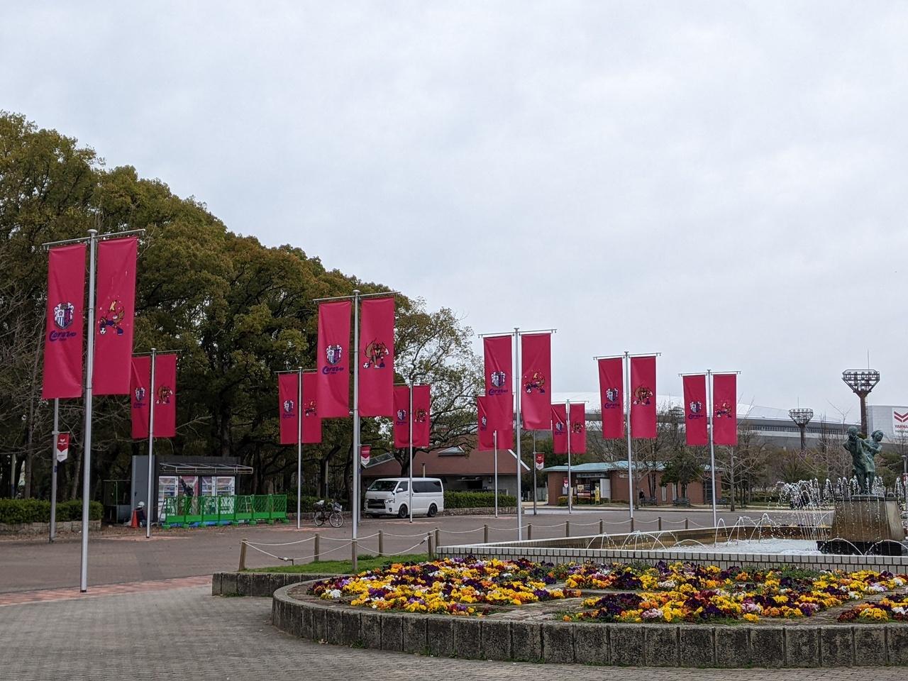 1週間ほど前の3/20日にも大阪城に来たけど、その時はまだつぼみは固かった。 -
