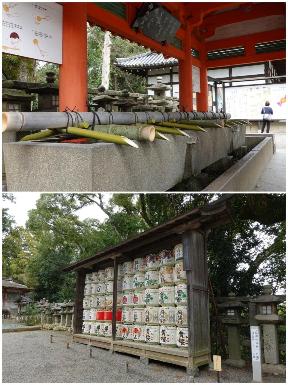 境内に入るとお約束の手水舎と御神酒として納められた日本酒の樽。