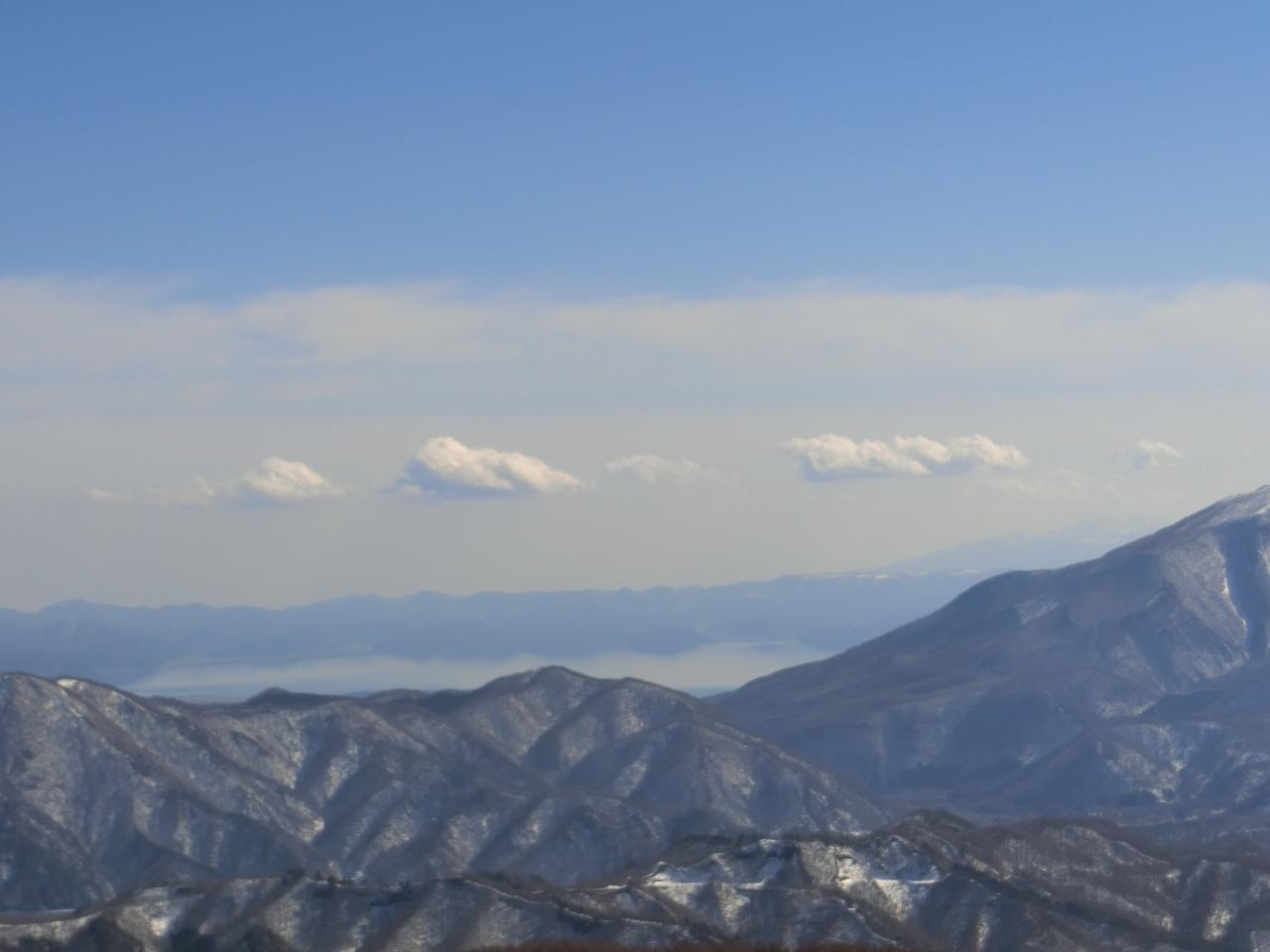 猪苗代湖の湖面に靄が見えます。
