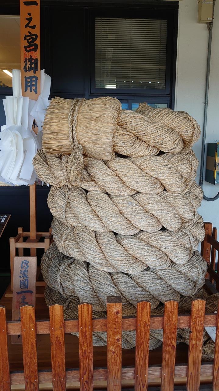ホームに御柱縄