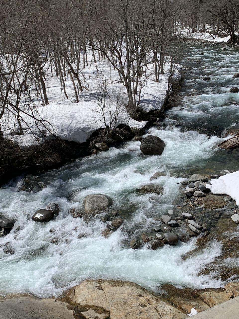 渓流のやや騒がしい水音を聞きながら帰りはのんびりと国道を歩く