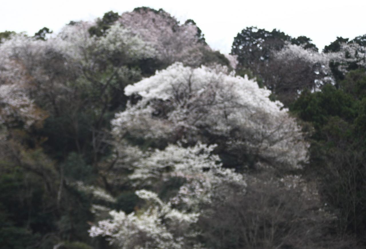正面を見ると、山桜が満開!