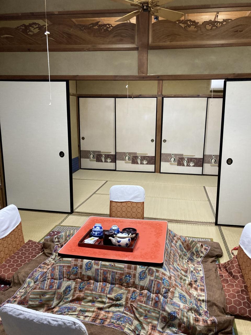 私たち母子とMarielさんは同室。おそらく宿で一番いい部屋と思われる広い和室2間があてがわれた。しかも炬燵があっていい!大人一人2食付きで8800円。小学生は6割。炬燵に、子供たち大喜び。Mattさんは別室だったのだけど、そちらも一人には十分な広さだった。