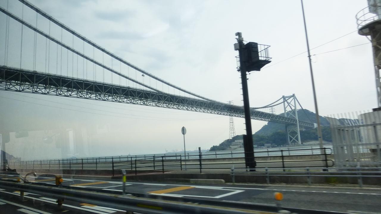 関門海峡と関門橋です。