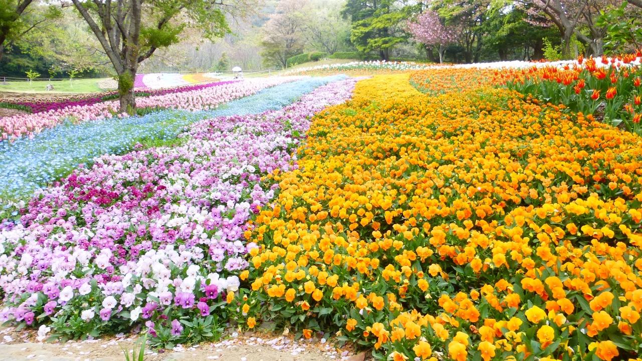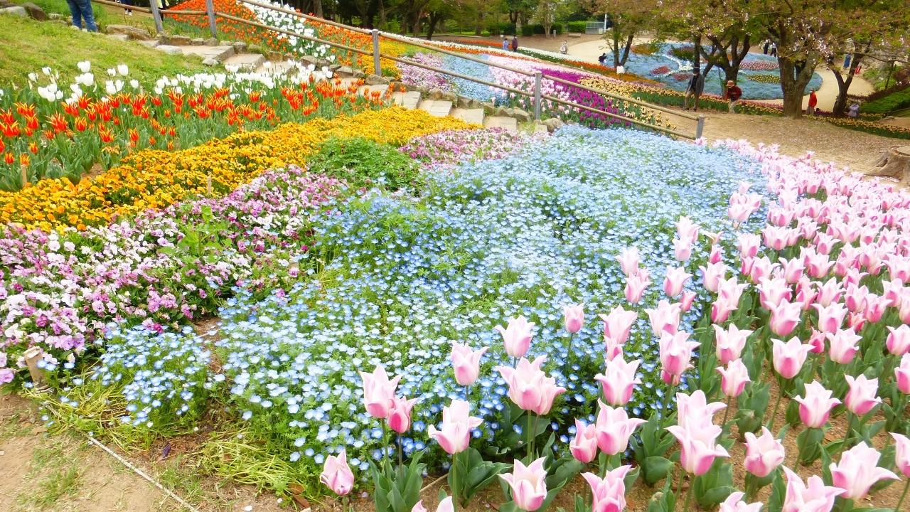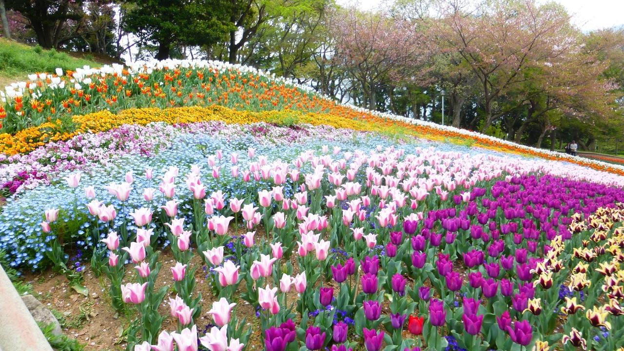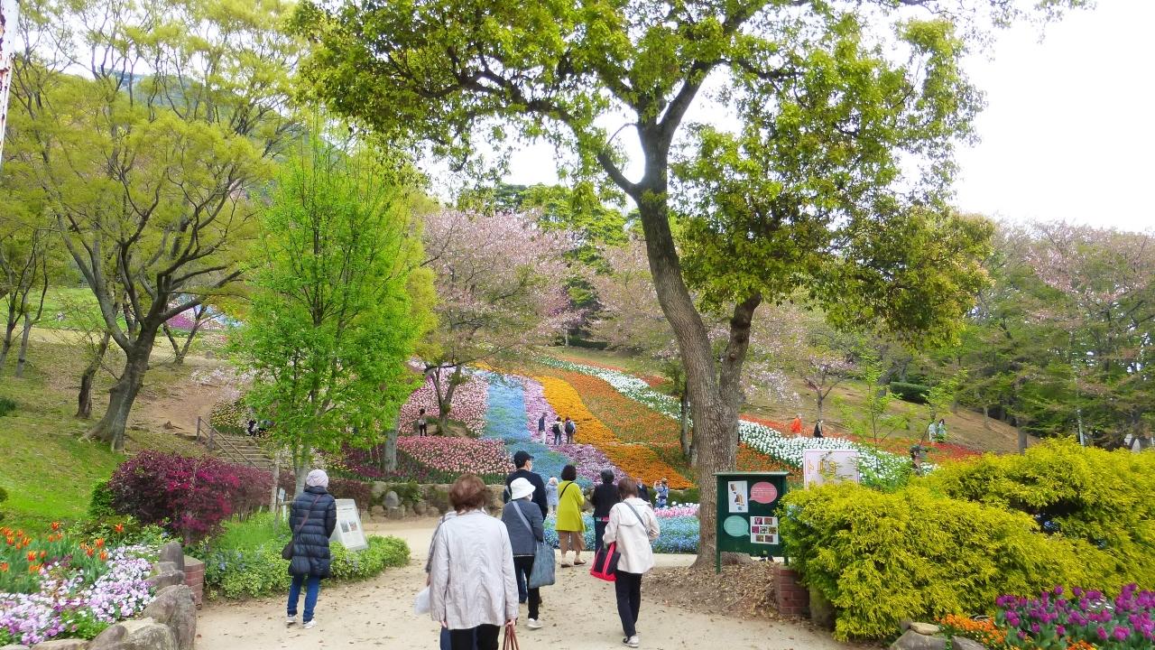 花満開の火の山公園トルコチューリップ園を散策した時の様子です。