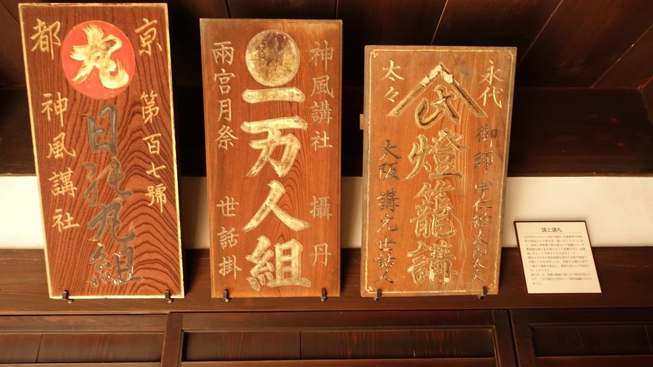 壁に掲げられた講札。