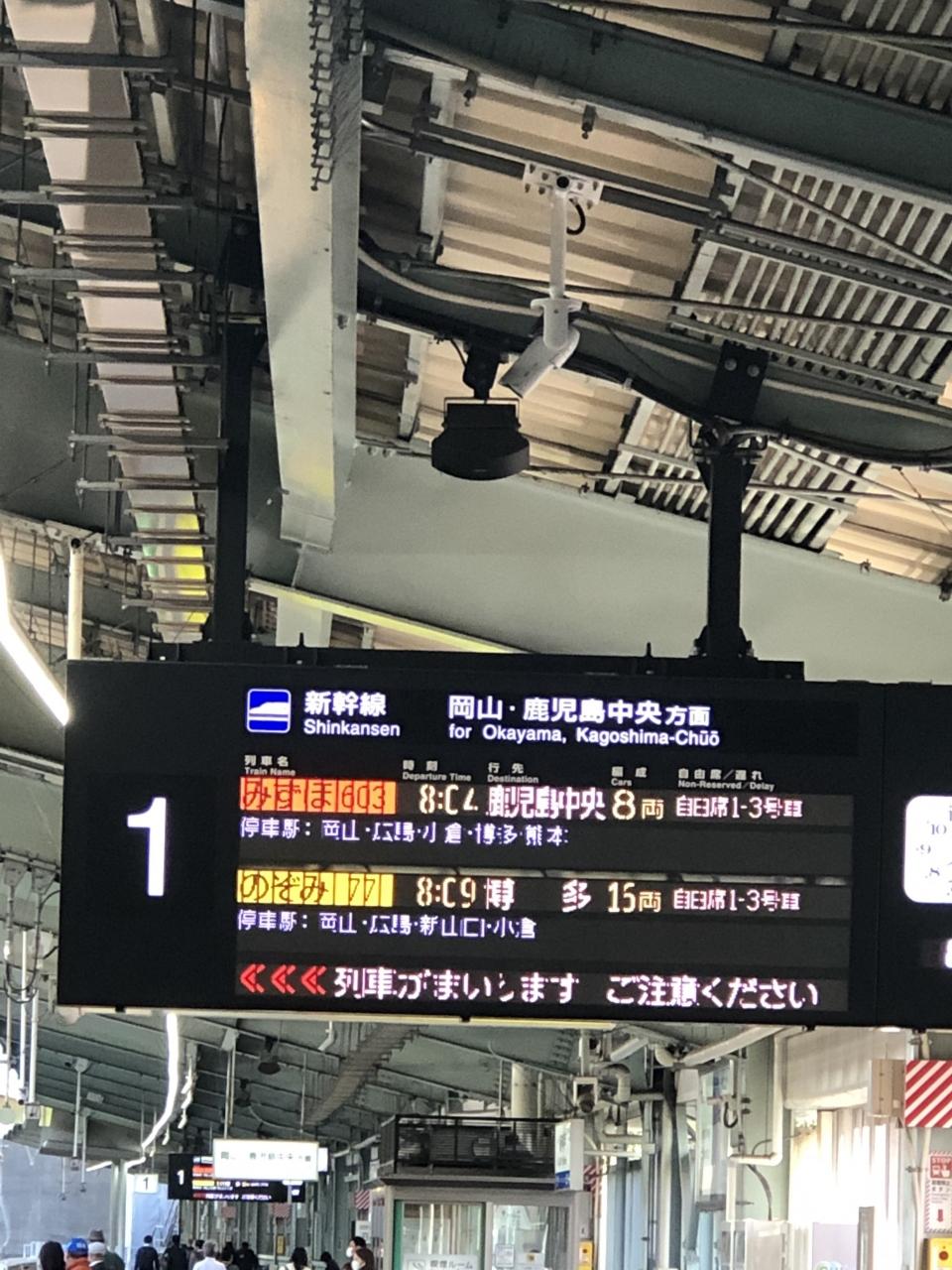 新神戸8時4分発、みずほ603号で鹿児島へ