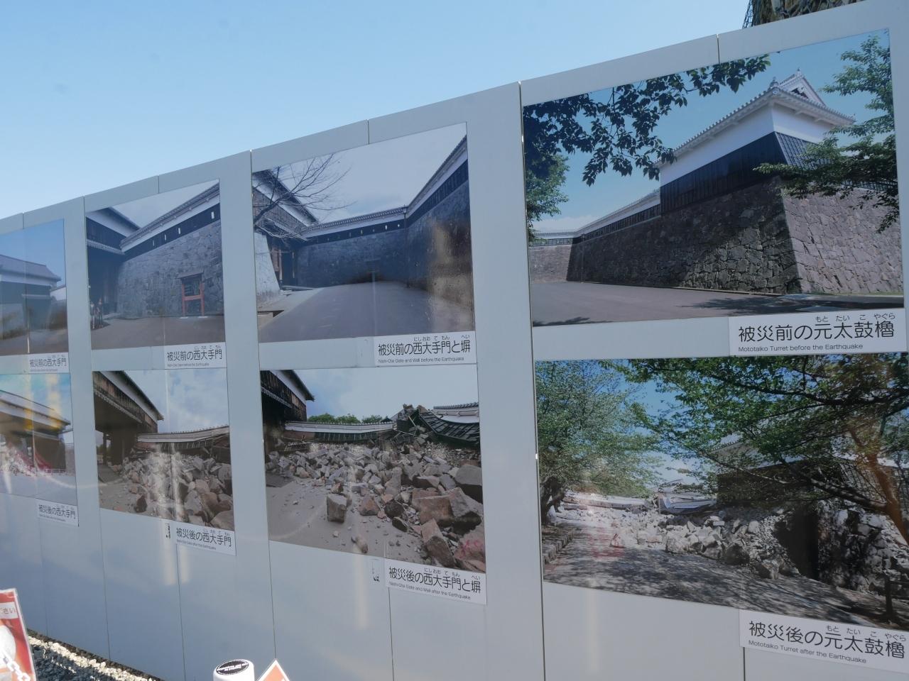 パネルには被災前の熊本城の姿が。 -