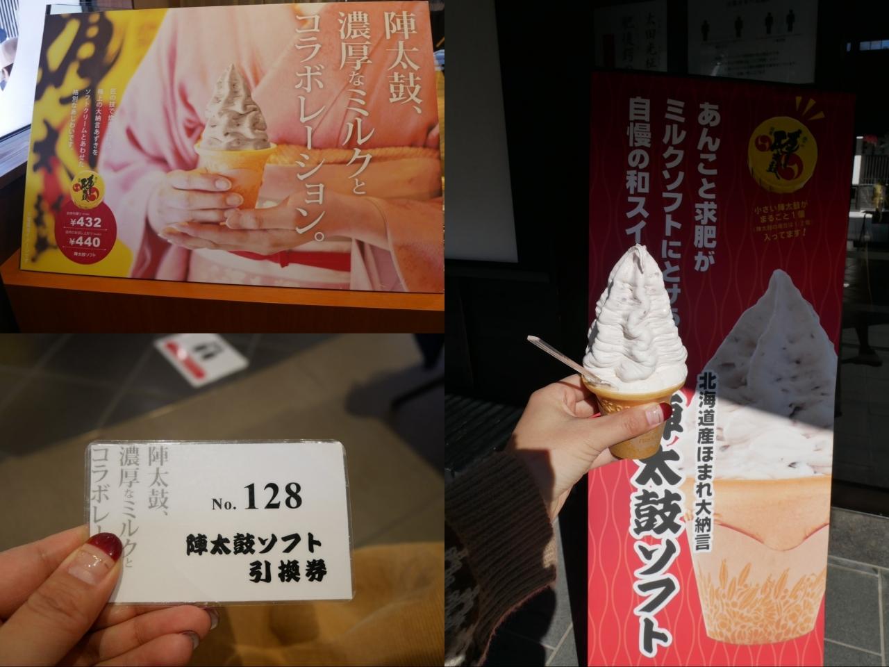 陣太鼓が大納言あずきのお菓子なので小豆のソフトクリーム。