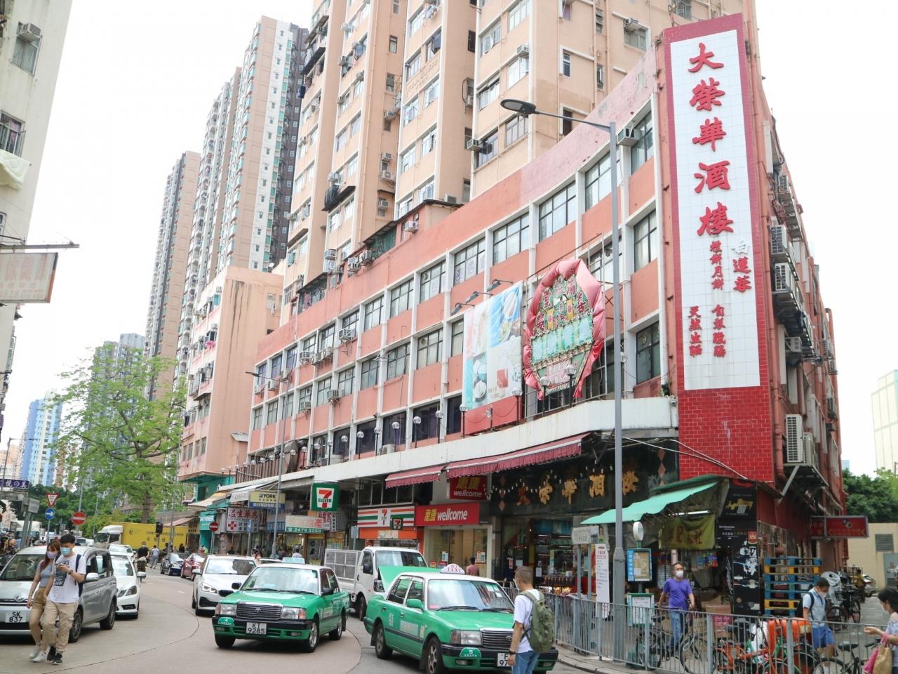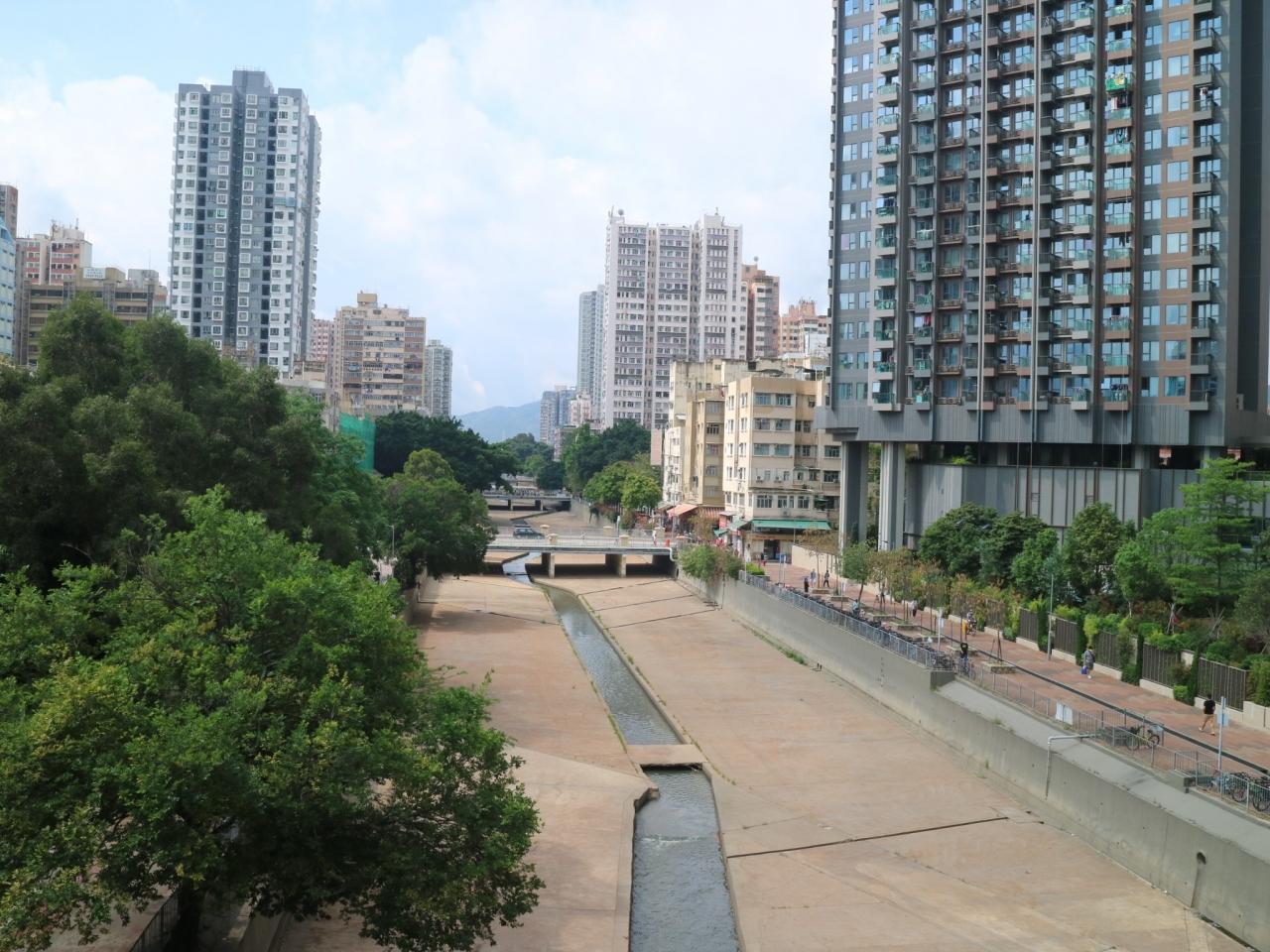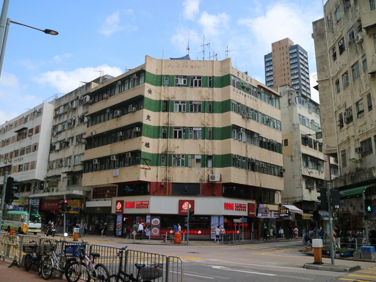 香港島や九龍だったらビルのコーナーはカーブしているが,ここでは角張っている。 -