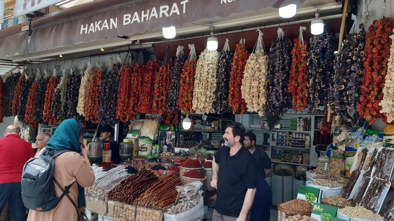 ホテルに戻る途中、店先ですだれ広げ現場に遭遇。フィリクといって、タルハナチップスの濡れバージョン。