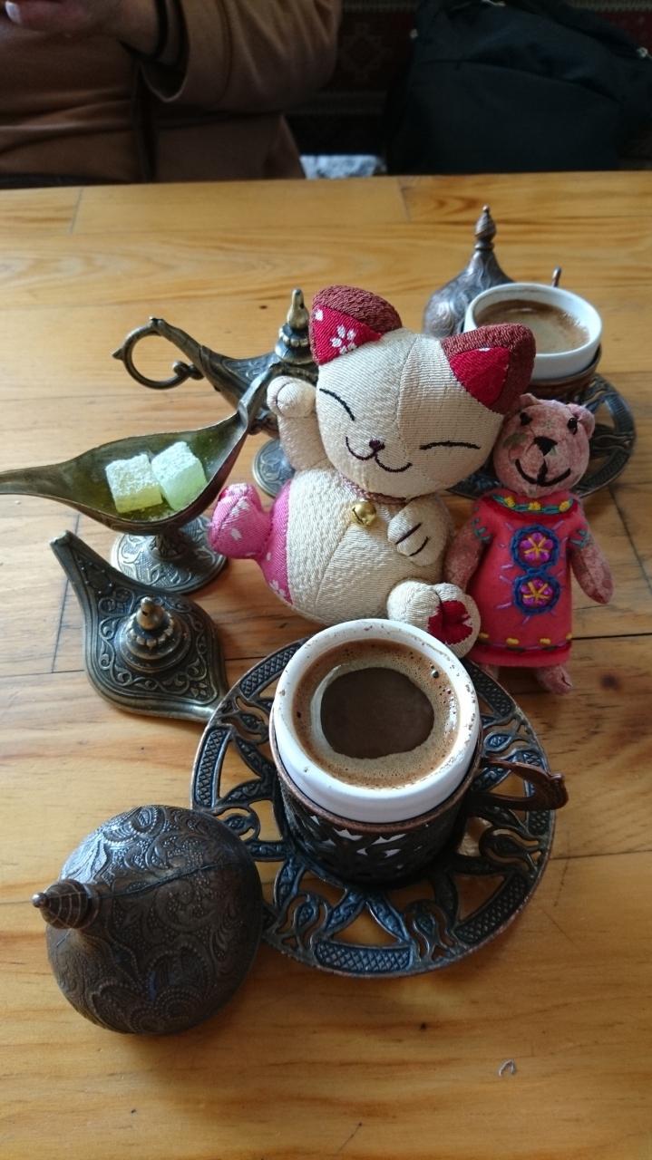 元気に復活したところで、コーヒータイム。熱した砂で沸かすトルココーヒー。時間をかけるのでまろやかなコーヒーになるんやとか。