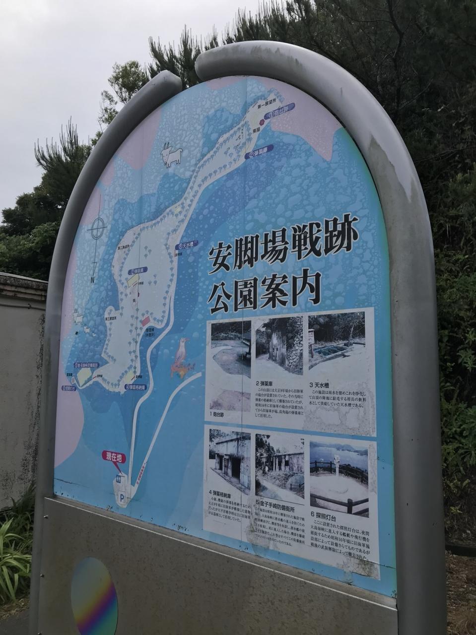 先ずは安脚場戦跡公園へ向かいますが、これ、対向車が来たらどうなるの?というような軽一台がやっと通れるような狭い道を通るなど、いきなり不安を覚えつつ到着。