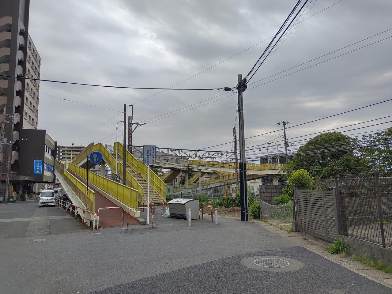 千葉県側は駅前を除いて一戸建てが主体の街並みであったが、都内に入るとマンションが主体の街並みに代わる。