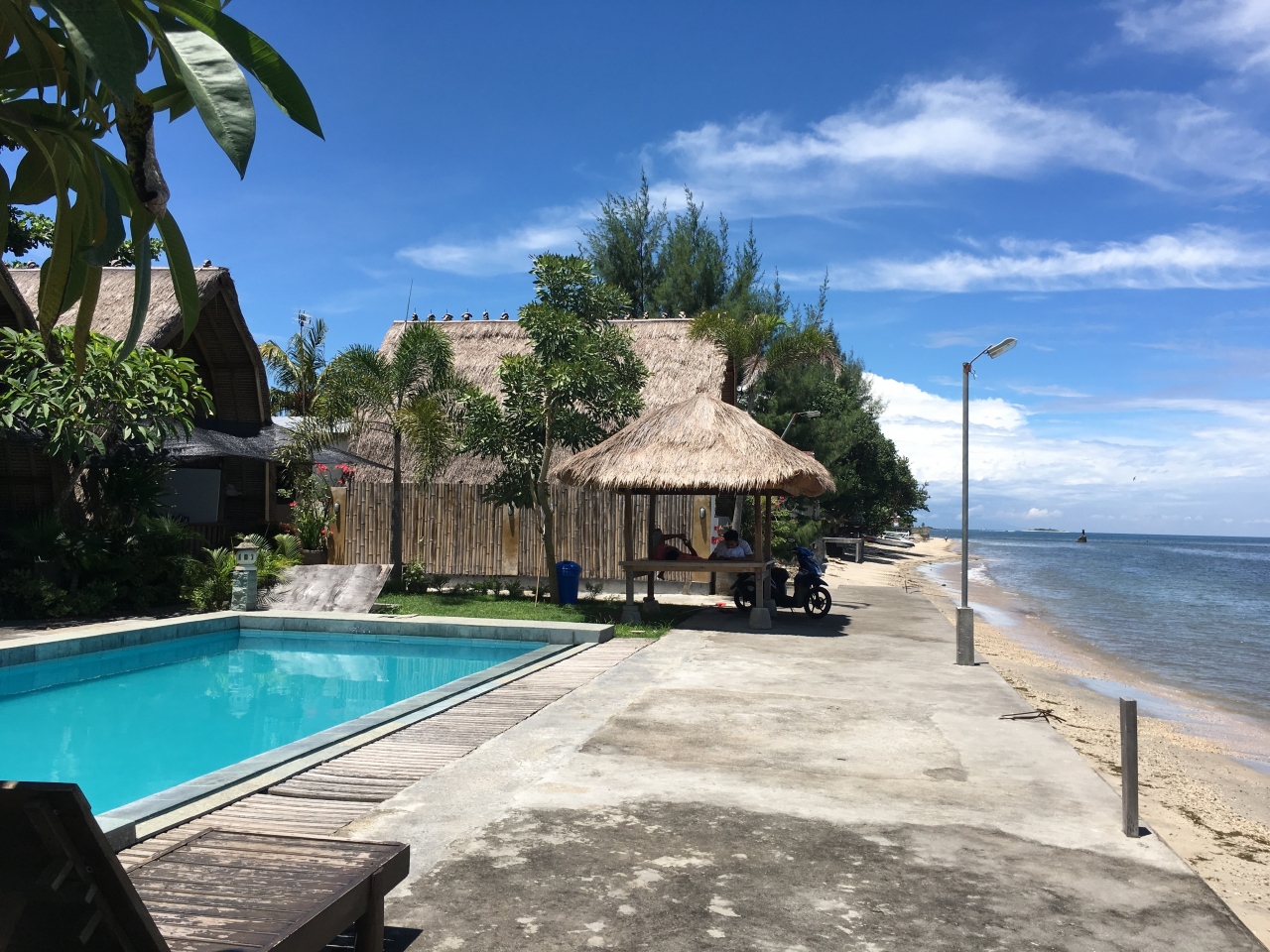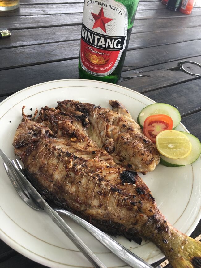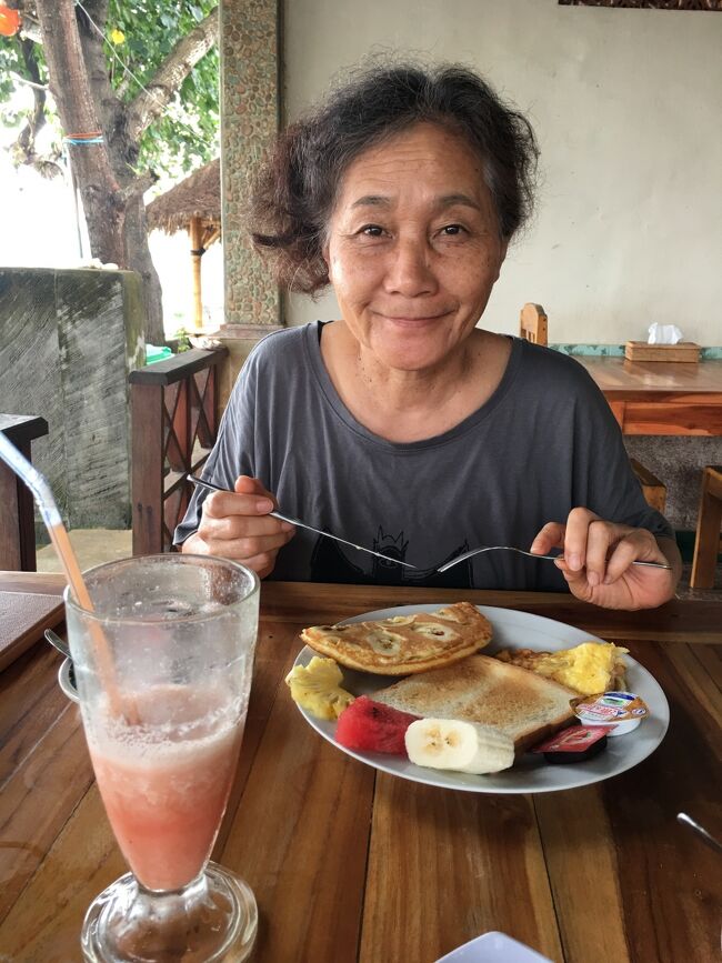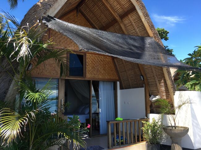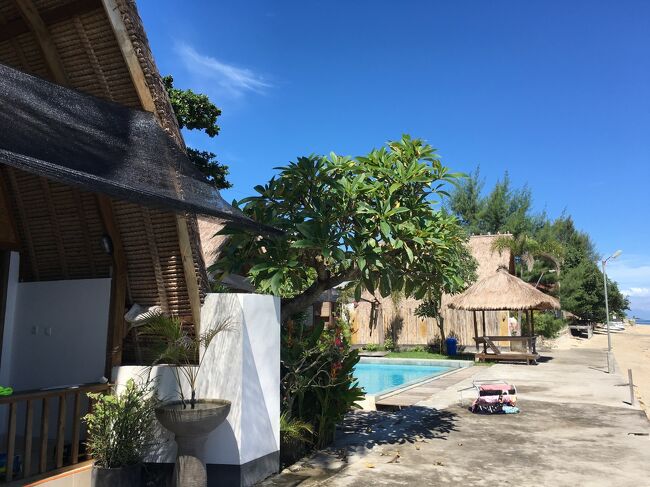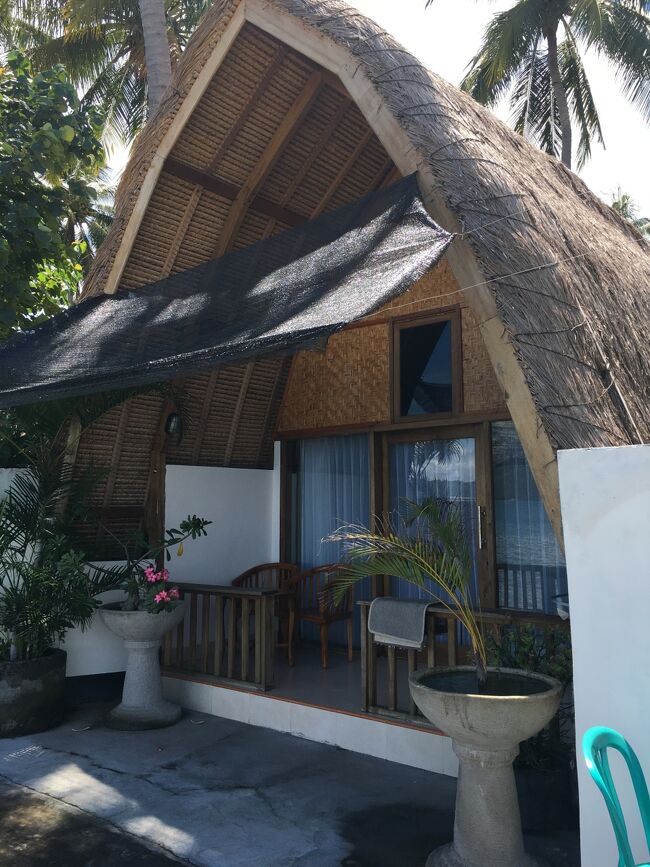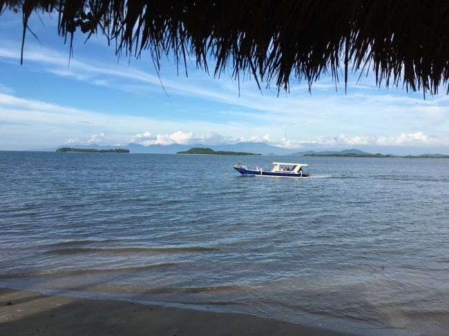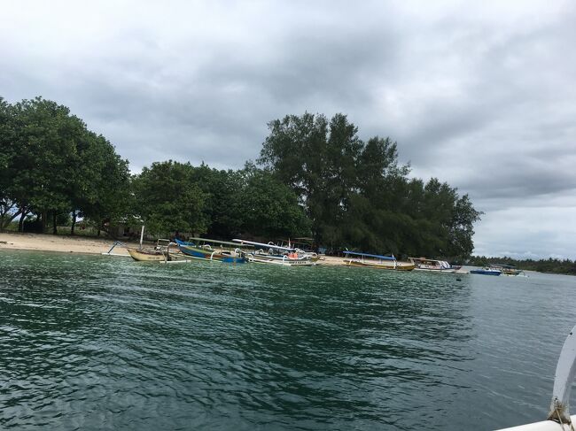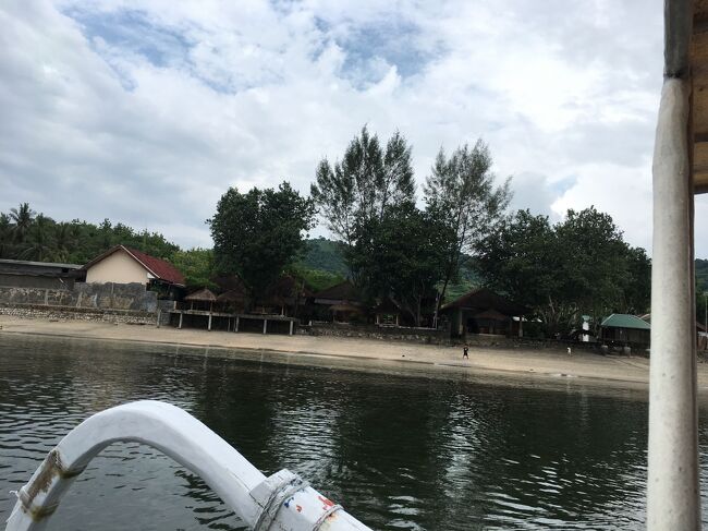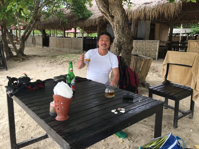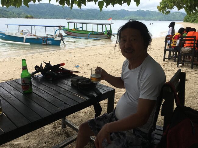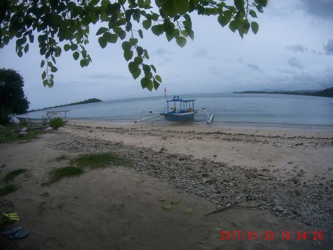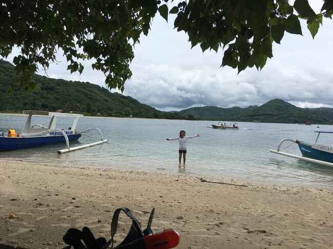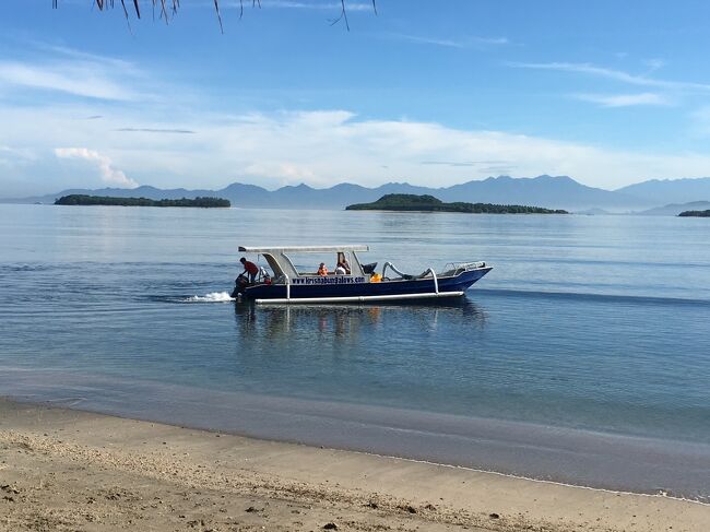 宿のボートで目の前の小さな島、三島巡りツアーへ。ギリ(島と言う意味)アグーへ。今回初めての海で泳ぐ。シュノーケルの道具を持参したので早速試してみる。