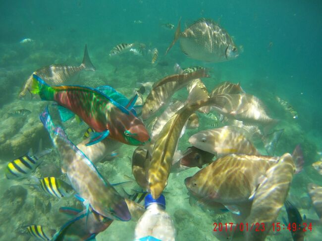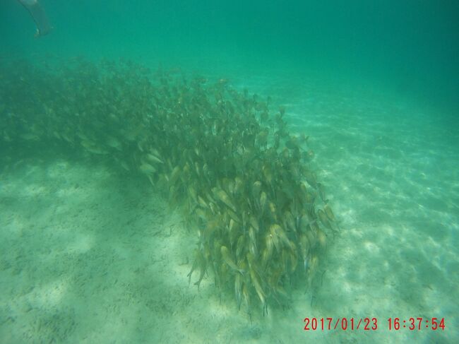 こんなに魚を見たことが無い。今までのシュノーケリングの中で最高の魚影。種類もおおく、大きな魚の群れも見られました。