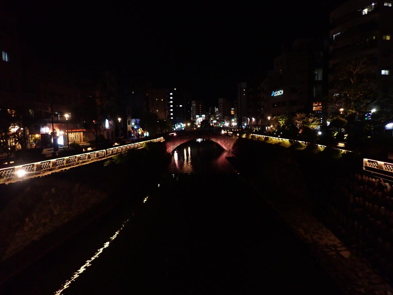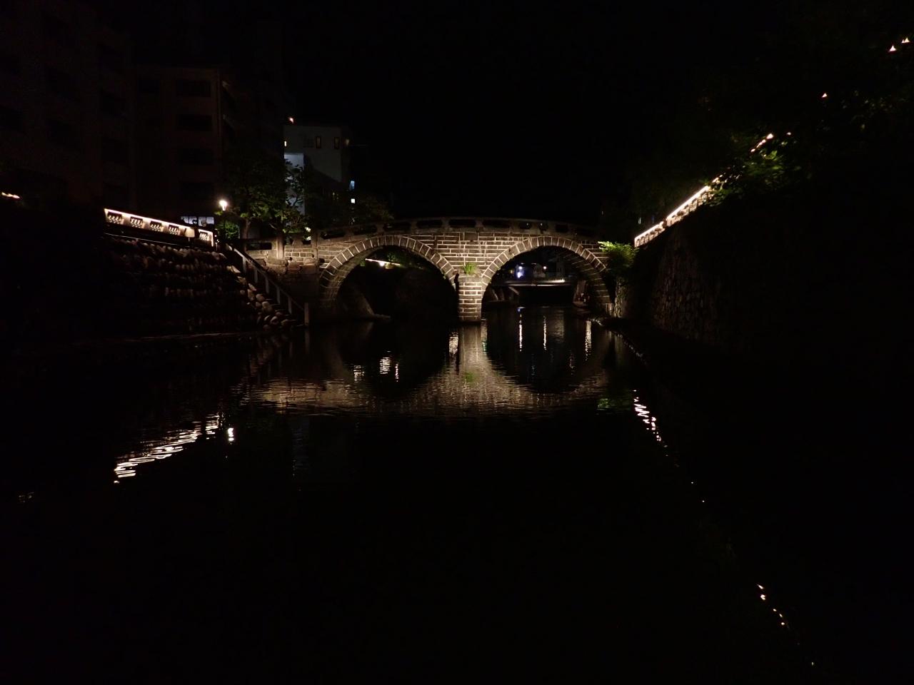 素晴らしい稲佐山の夜景の後は夜の眼鏡橋。