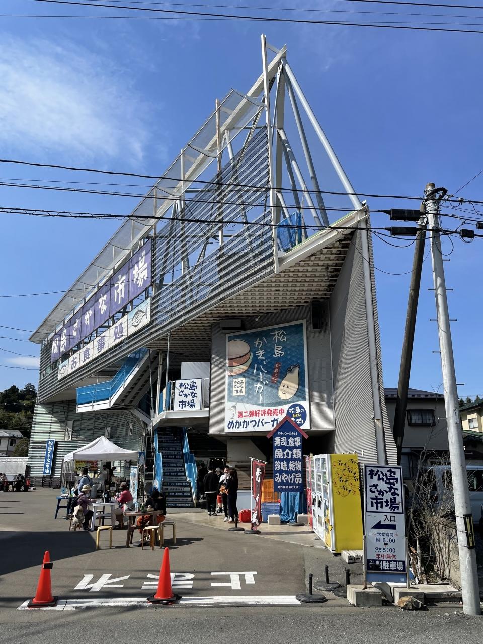 五大堂を離れ、10分ほど歩いて松島さかな市場へ。牡蠣好きな友人からおすすめされた場所で、ちょっと小腹が空いていたのでタイミングは最高。