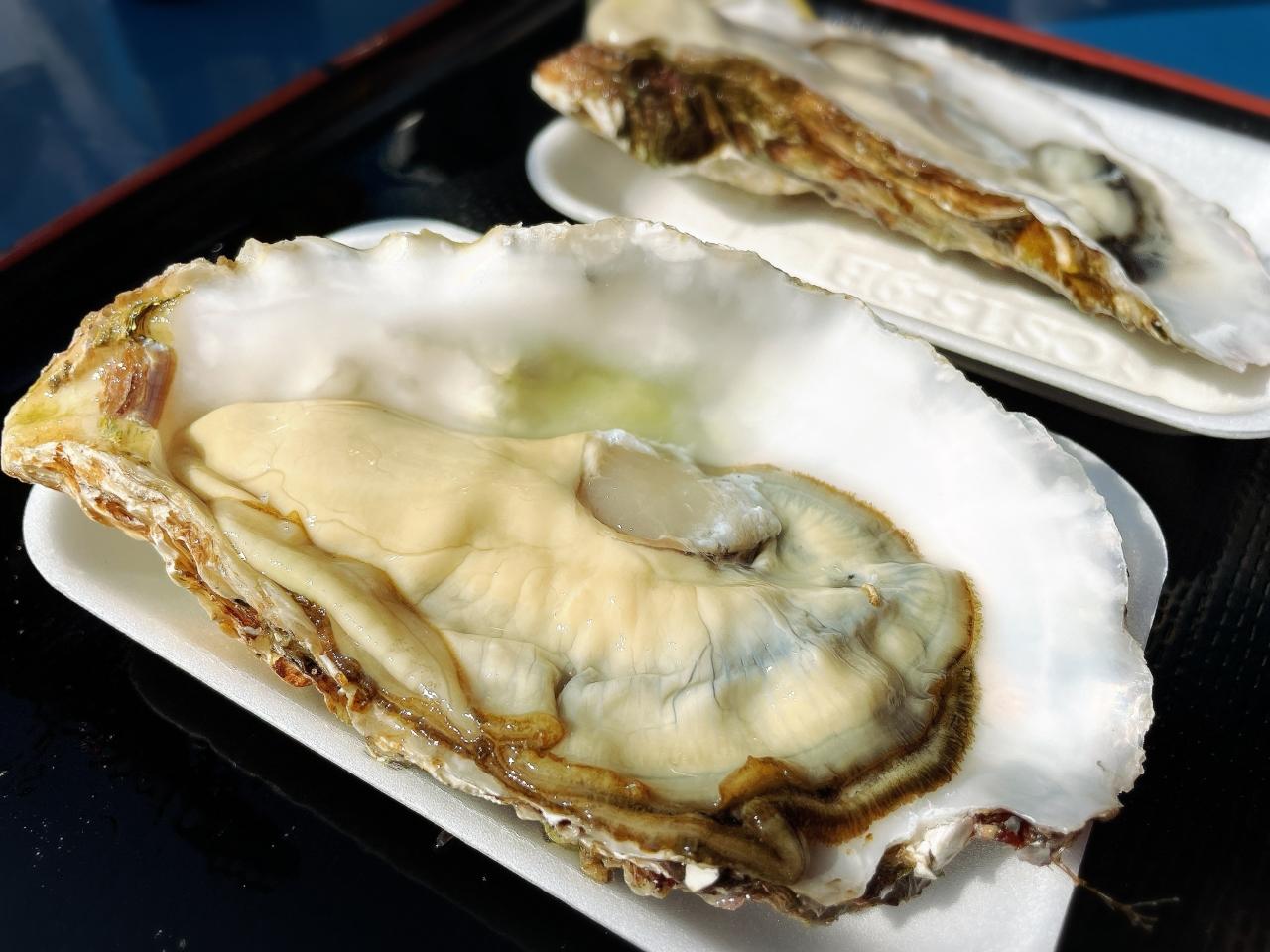 焼がきハウスで頼んだのは生牡蠣。パラソルがなく、炎天下の中40分くらい待ってやっと出てきました。それでも美味しかったので待ってよかった!!