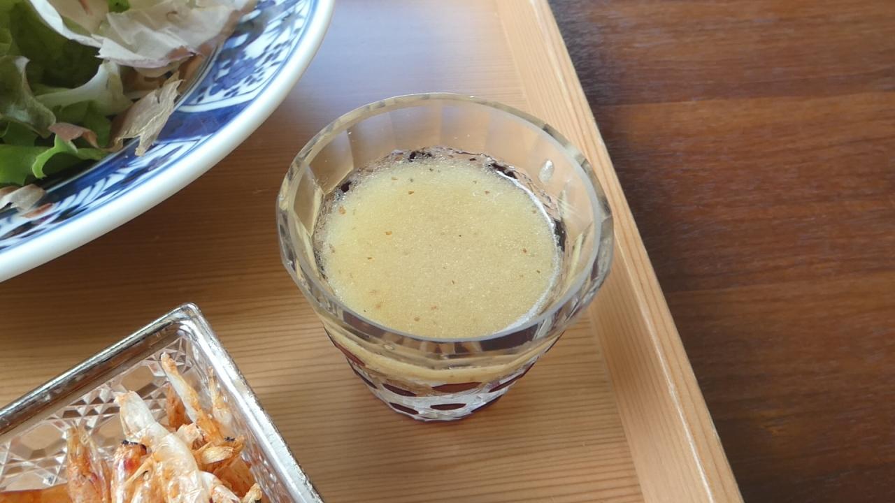 干し桜海老をふりかけ、たっぷりドレッシングで頂きます