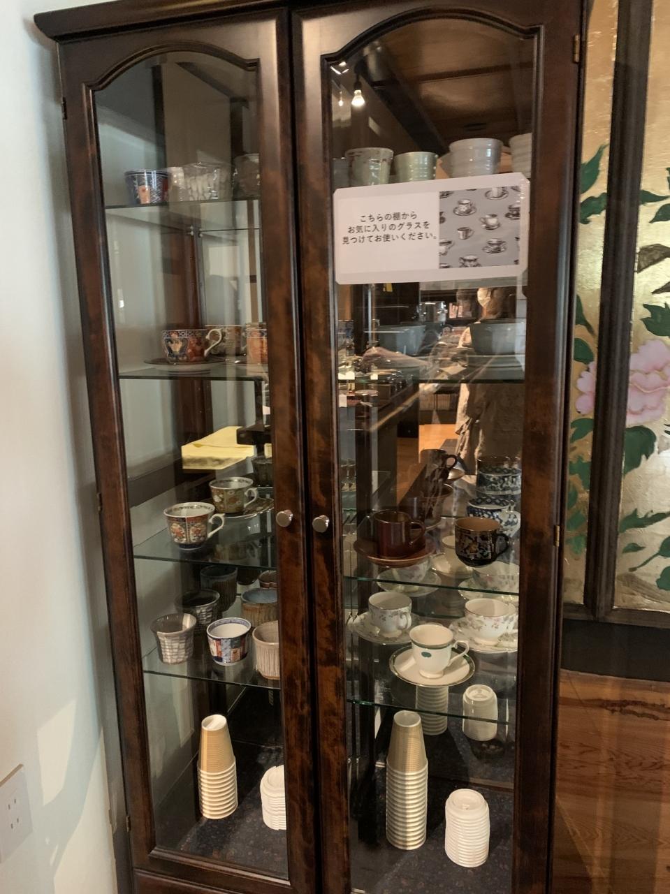 ライブラリーカフェのフリードリンク。コーヒー、紅茶、お茶がありました。