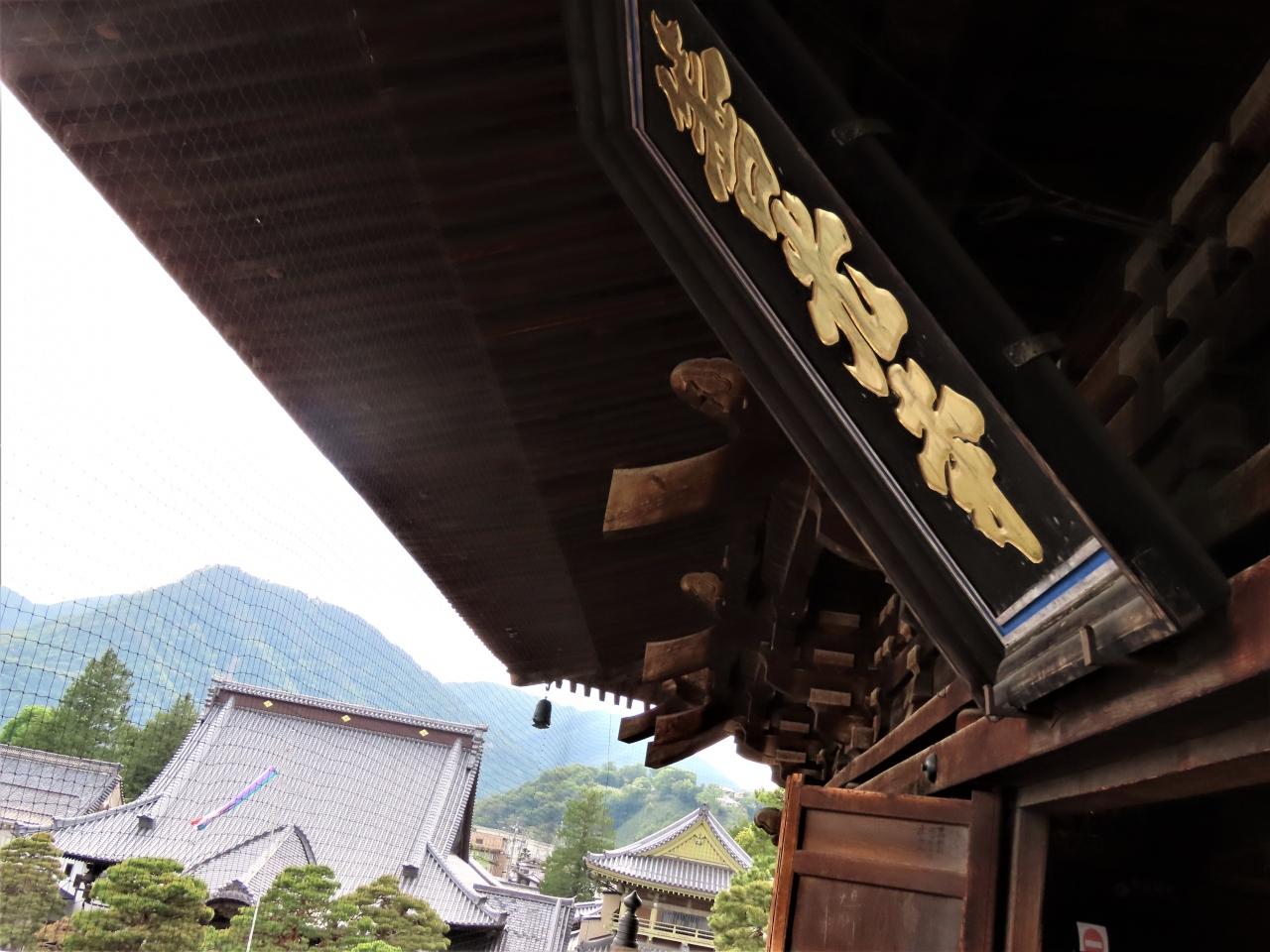 善光寺山門楼上に掲げられた通称 " 鳩字の額 ”