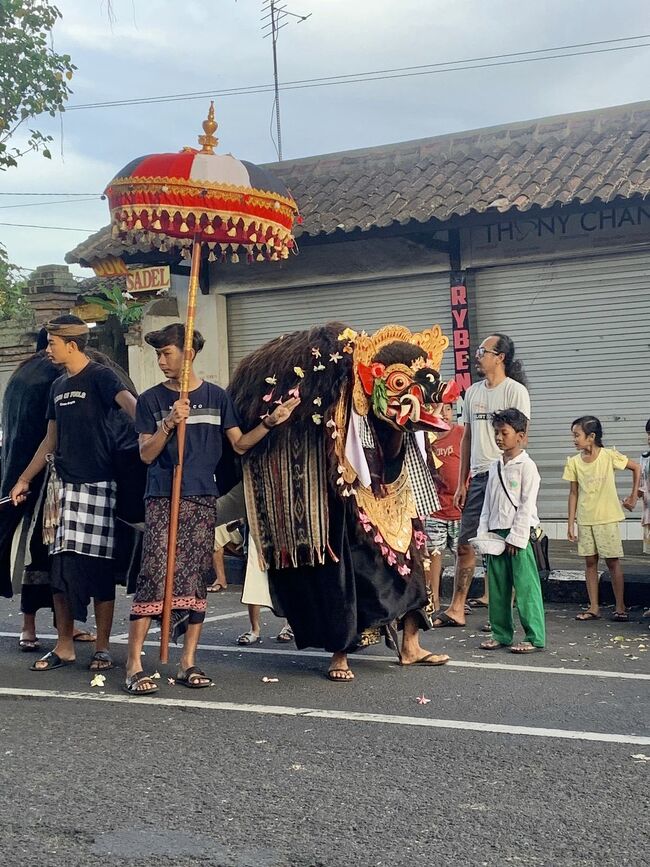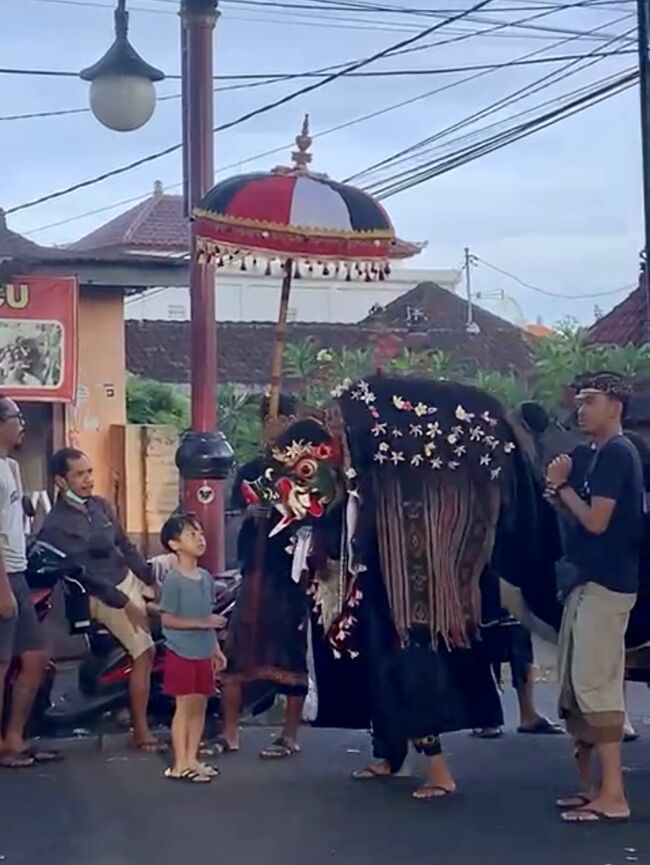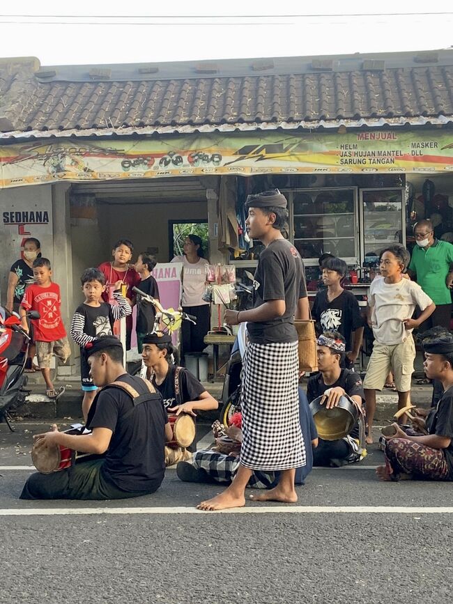 ガルンガンの時期は学校がお休みなので、子供達がバロン隊となって村を練り歩いています。