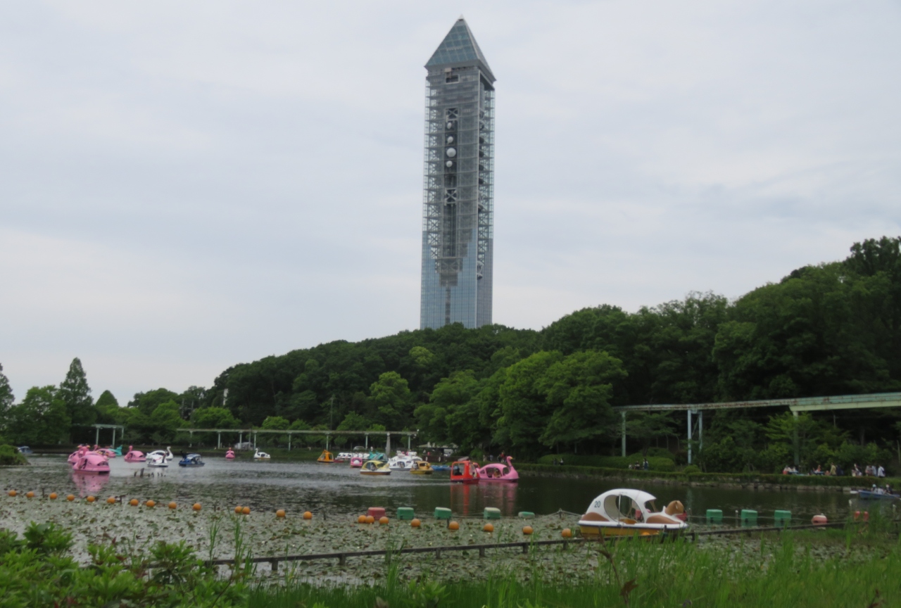『東山スカイタワー』の光景です。東山公園の施設の一つで、正式名称は東山公園展望塔です。高さは、地上134mです。ただし、タワーは標高80mの丘の上にあるため、標高では214mになります。