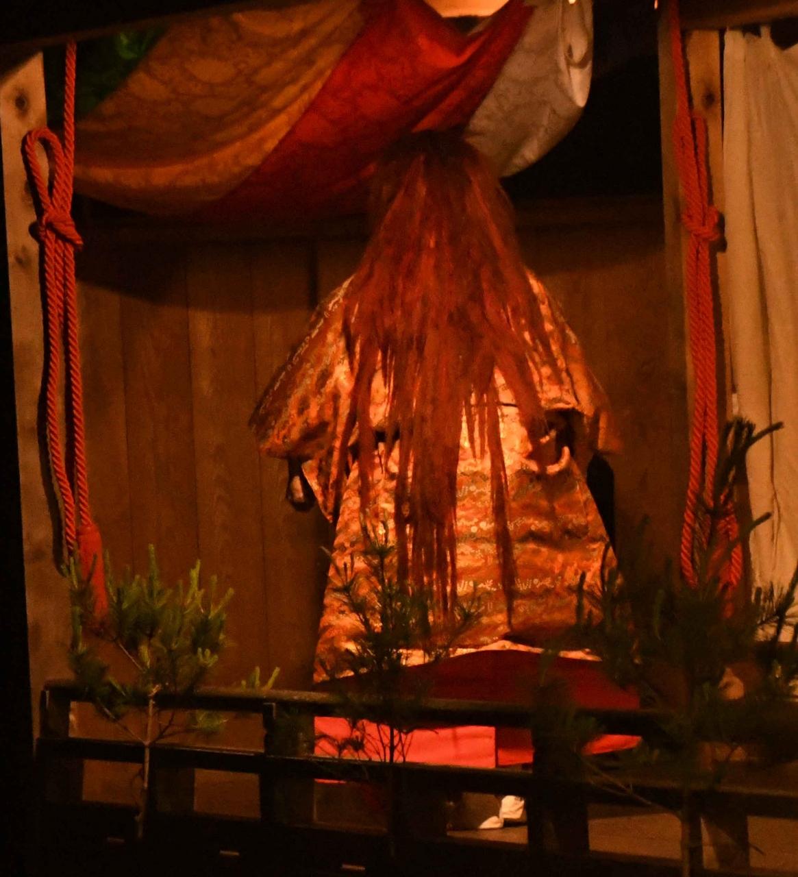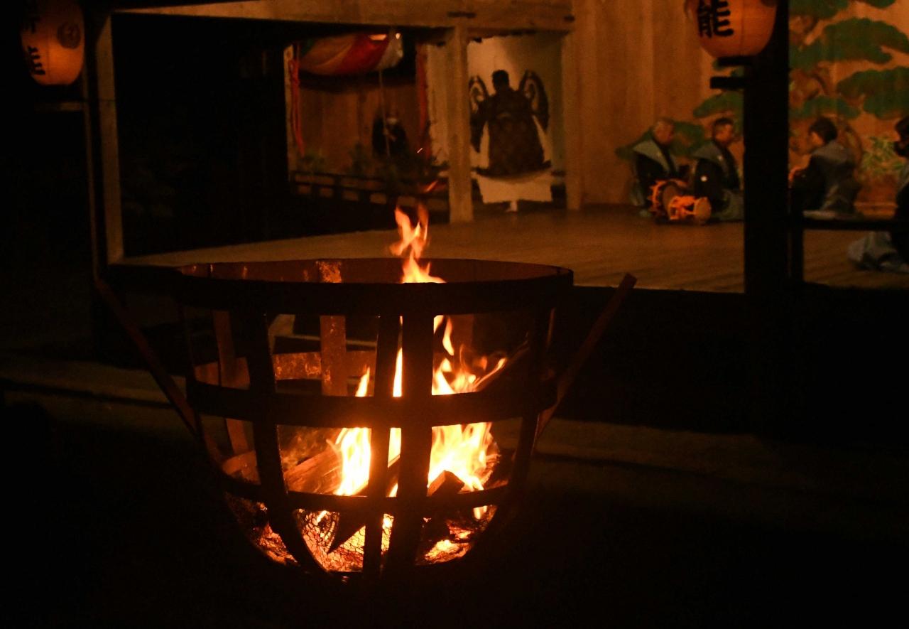 はじめは、舞台の目付柱前の松明を点火。