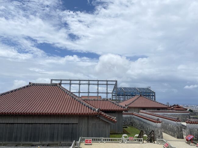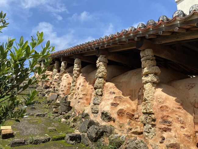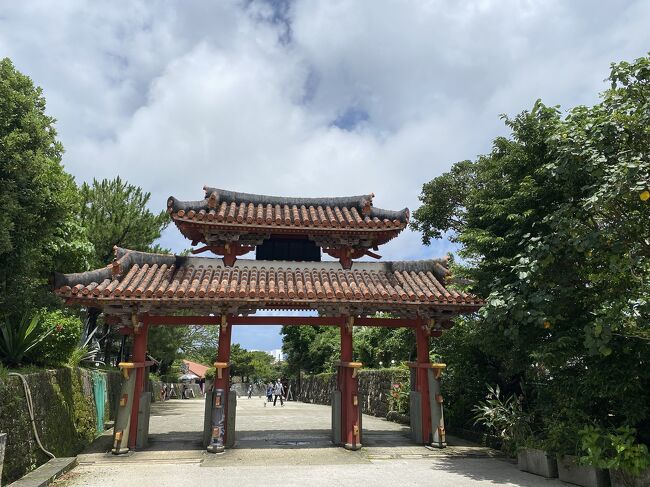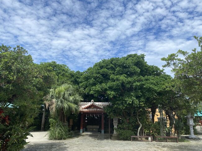 琉球瓦に朱塗りの、沖縄らしい神社です。