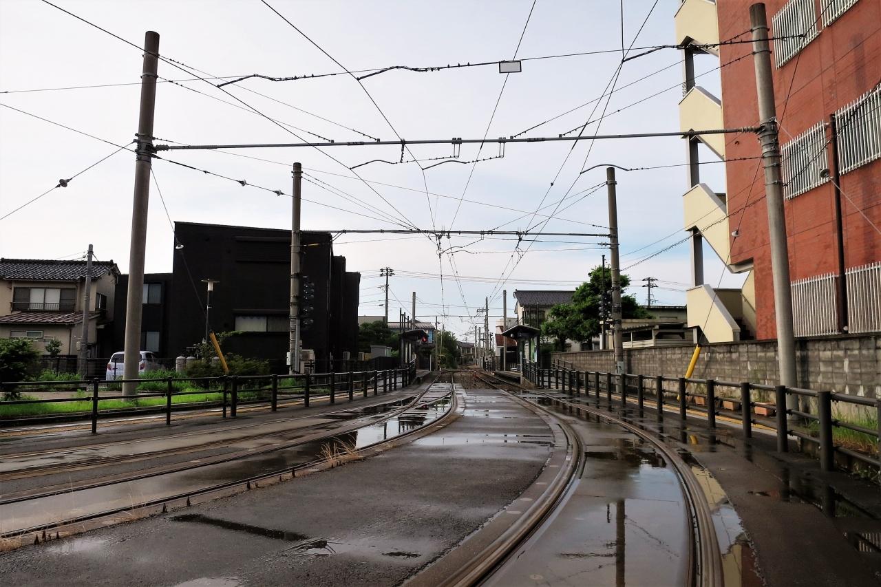 このルートは富山港線の行程を作成するときに知りました。万葉線は、元富山地方鉄道の路線でした。もしかすると、万葉線と富山港線を繋げる計画があったかもしれません。実際に富山港線側は延伸計画がありましたが、断念し今の岩瀬浜駅に落ち着いています。
