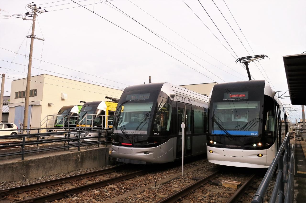 富山港線は各路線(富山大学前・南富山駅前・環状線)からの車両が乗り入れます。