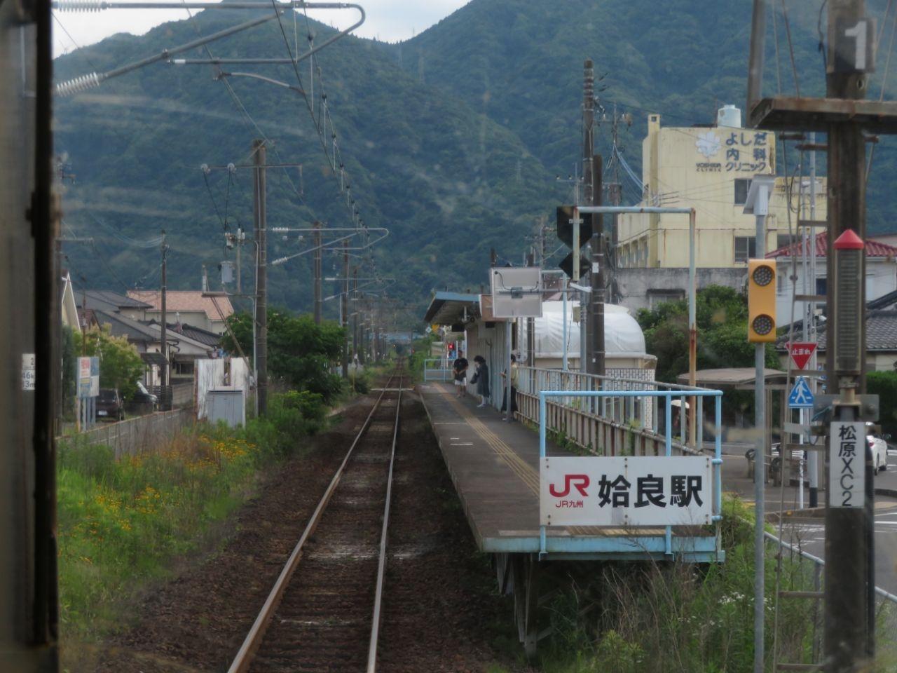 鹿児島県最後の駅の米ノ津でもしばらく停車。EF81-303牽引の貨物列車が追い抜いて行った。ここから熊本県編に移るのはあまりにもアレなので、そのまま引き続きご辛抱いただきたい。米ノ津駅 駅