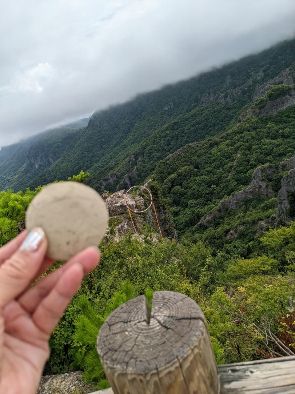 この小さな瓦(5枚1組200円)を的に向かって投げます。入ればご利益があるとされていますが・・・粘土でできた瓦は軽くてなかなか思う方角に飛んでくれませんでした( ;∀;)