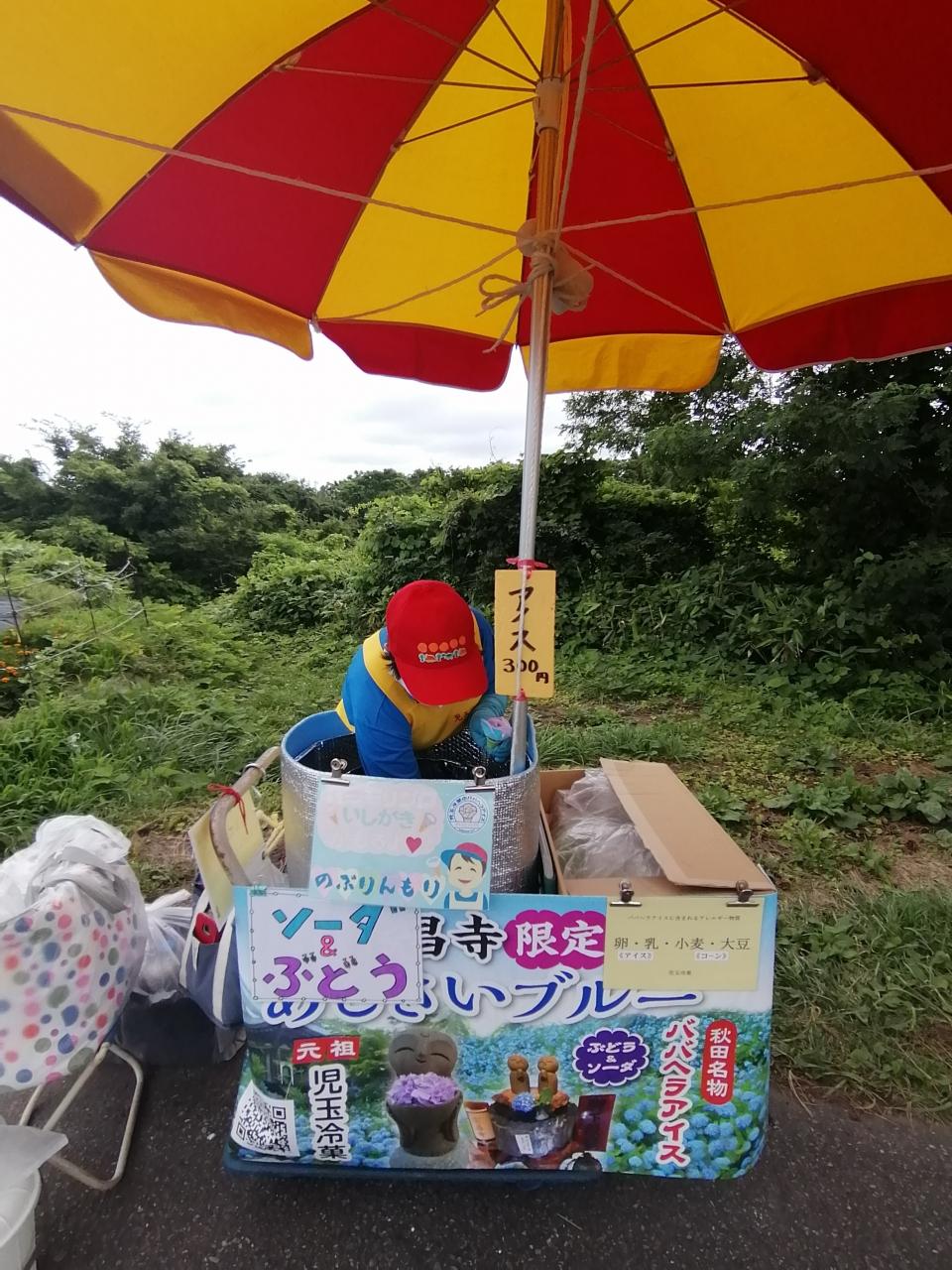 夫婦松の近くでババヘラアイスを購入しました。雲昌寺限定のババヘラアイスは駐車場へ行く途中と雲昌寺出口付近の2カ所あり味が違うと見たので購入しましたが、昨日食べた雲昌寺出口と味が同じでした。後で雲昌寺出口のババヘラアイスを見たらソーダ&ミルク味でした。場所を交換していたようです。