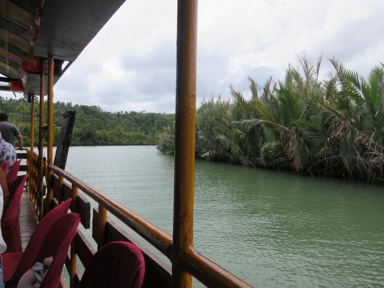 ロボック川クルーズでのランチバイキング。フィリピン料理もおいしく、生演奏が雰囲気を盛り上げます。