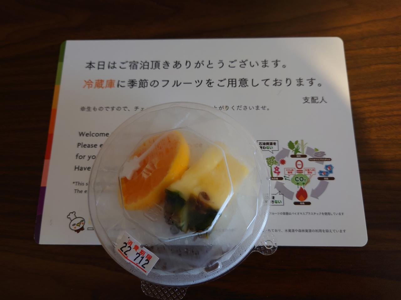 ウェルカムフルーツが冷蔵庫に入ってました。数年前から始まったこのサービス。フルーツ好きの私には、とっても嬉しいサービスです(^^)