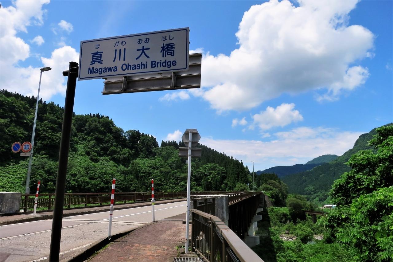 立山駅から歩くこと400m(5分)、真川大橋を渡ります。
