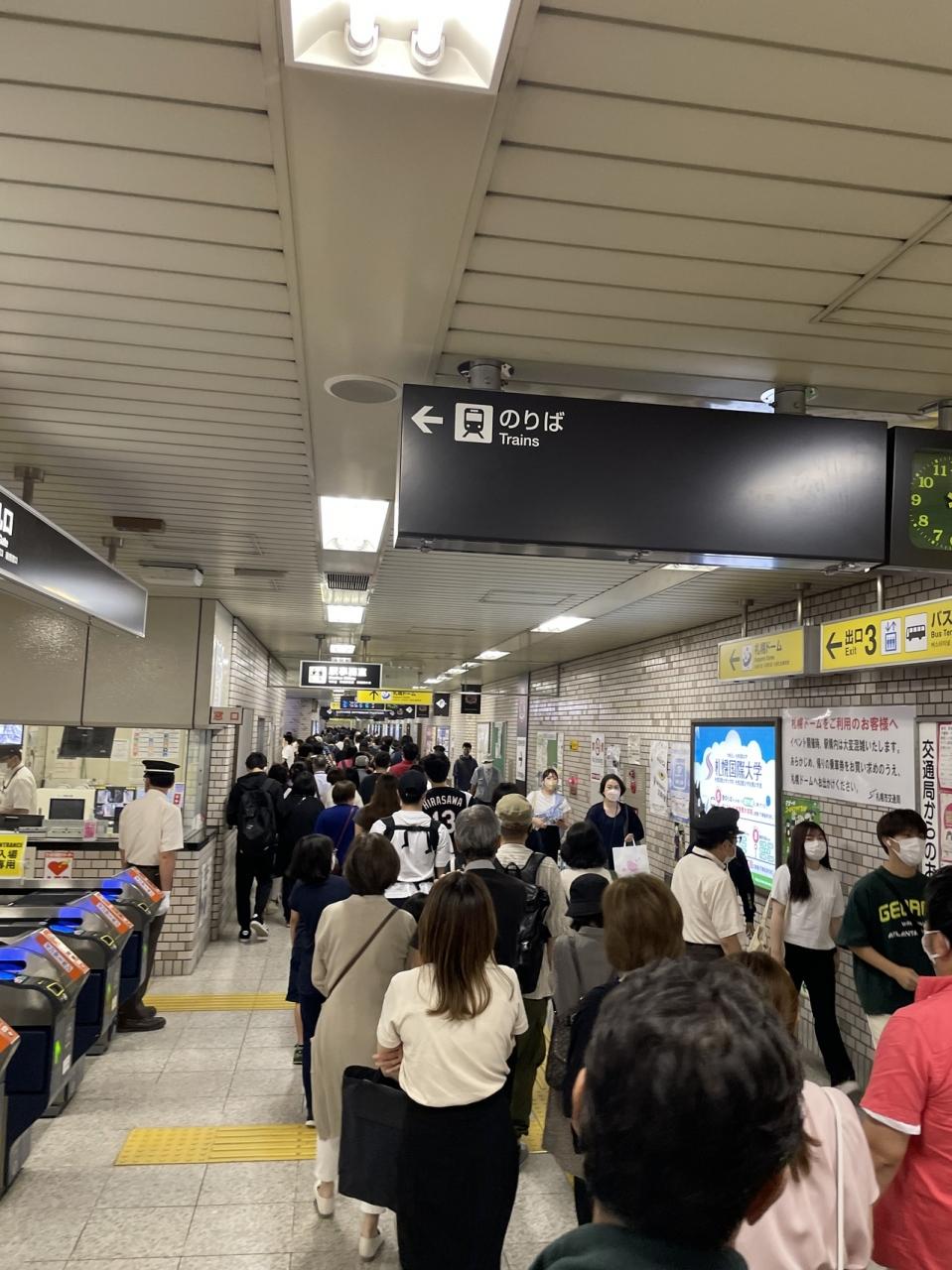 しかも東京の感覚からすると半分しか乗っていない状態でももう満員と乗り込むのをやめてしまうとかなので、駅員が中に詰めるよう誘導すれば良いのですが...